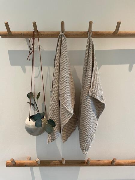 Når du tørrer dig med det vaffelvævede håndklæde, giver det en følelse af eksfoliering af huden, hvilket føles rigtig rart. Hørhåndklædet fylder ikke meget i skabet eller skuffen, og kan derfor nemt tages med i sportstasken, i svømmehallen, til stranden, eller på rejsen.