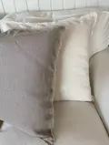 Mælkehvid pudebetræk med smuk broderet blonde i hør. Pudebetrækket er rigtig flot at mixe me hørpuder i andre farver og mønstre, for et hyggeligt bohemelook.