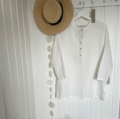 Let smuk bluse med lange ærmer, slidser i siderne og stolpelukning med 6 perlemorsknapper som fuldender det afslappede look.