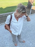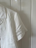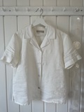 Smuk DOLI skjorte i mælkehvid med revers krave, fire perlemorsknapper og et smukt hulmønster i enden af begge ærmer.