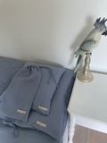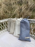 Sengesættet er pakket ind i en fin mulepose af hør, som matcher farven på sengesættet. Muleposen kan bruges til mange formål.