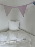 Dynen lukkes med bindebånd, og puden har kuvertlukning.