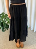 Skøn hørnederdel med elastik i taljen. Dejlig afslappende, let og luftig at have på og nem at style til alle lejligheder.