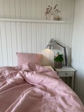 Blødt rosafarvet tætvævet sengetøj i 100% forvasket hør.