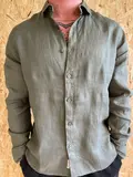 Flot langærmet khaki herre hørskjorte, med klassisk skjortekrave. Skjorten er enkel og i regulær fit, har en skøn lethed og et casual look. Hørskjorten er et MUSTHAVE i enhver garderobe, og passer til både hverdag og fest.