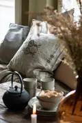 Ib Laursen Pudebetræk hørfarvet m/brunt broderi