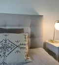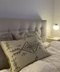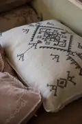 Beigefarvet pudebetræk med et smukt gråt broderi i hyggelig bohemestil. Pudebetrækket er rigtig flot at mixe med hørpuder i andre farver og mønstre.