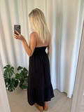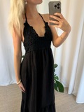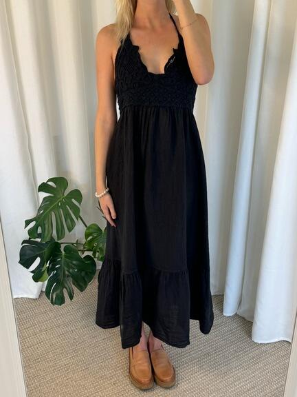 JOY hørkjole med hæklet bryst - Sort