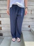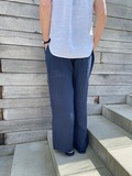 Luxzuz hør buks i en flot mørk navyblå farve. Buksen er dejlig rummelig og har 2 sidelommer, elastik i taljen og bindebånd.