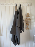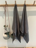 Lækkert vaffelvævet håndklæde i vasket hør og en flot mørkegrå farve.