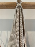 Lækkert vaffelvævet håndklæde i vasket hør og en flot naturlig hørfarve.